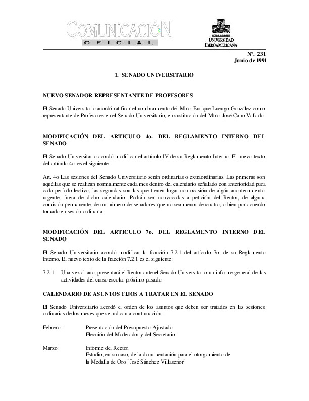 | Comunicación Oficial No. 231. 1 de junio de 1991 | Comunicación Oficial No. 231. 1 de junio de 1991 | | |