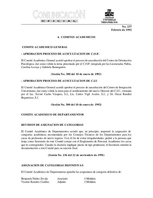 | Comunicación Oficial No. 237. 1 de febrero de 1992 | Comunicación Oficial No. 237. 1 de febrero de 1992 | | |