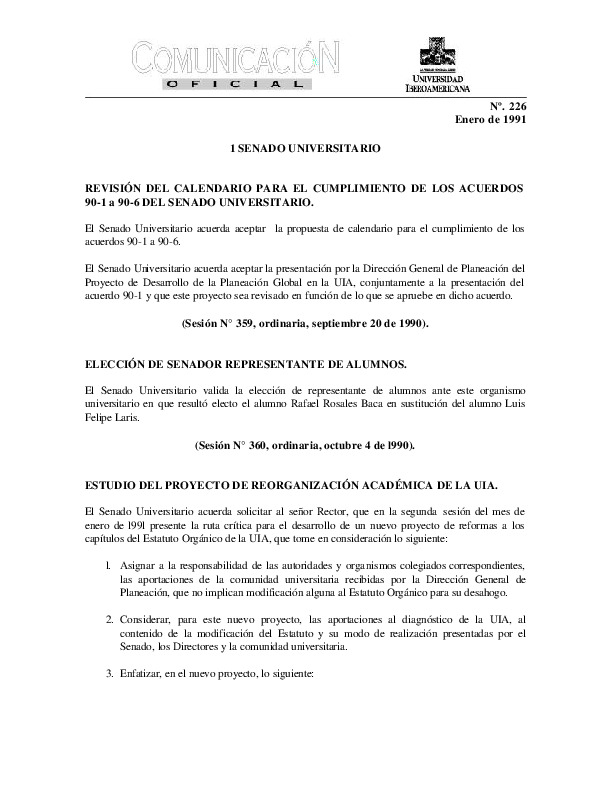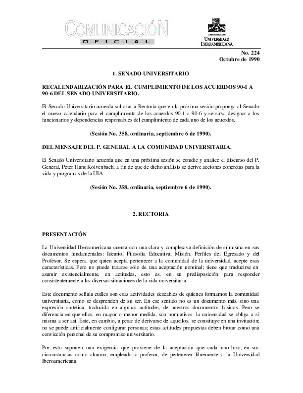 | Comunicación Oficial No. 224. 1 de octubre de 1990 | Comunicación Oficial No. 224. 1 de octubre de 1990 | | |