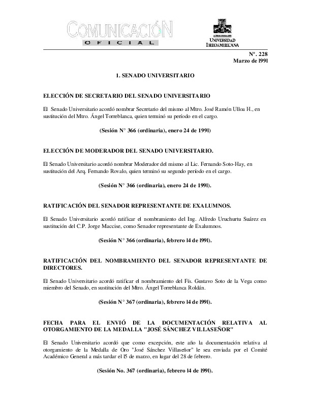 | Comunicación Oficial No. 228. 1 de marzo de 1991 | Comunicación Oficial No. 228. 1 de marzo de 1991 | | |