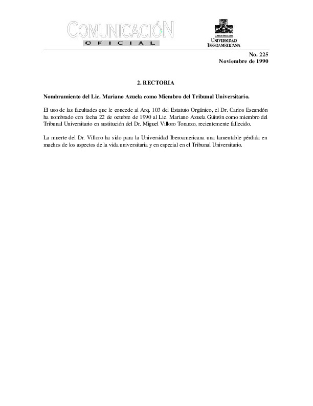 | Comunicación Oficial No. 225. 1 de noviembre de 1990 | Comunicación Oficial No. 225. 1 de noviembre de 1990 | | |