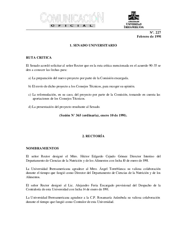 | Comunicación Oficial No. 227. 1 de febrero de 1991 | Comunicación Oficial No. 227. 1 de febrero de 1991 | | |