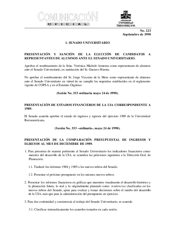 | Comunicación Oficial No. 223. 1 de septiembre de 1990 | Comunicación Oficial No. 223. 1 de septiembre de 1990 | | |
