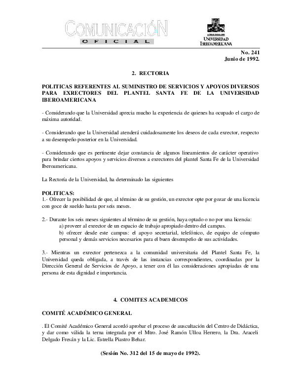 | Comunicación Oficial No. 241. 1 de junio de 1992 | Comunicación Oficial No. 241. 1 de junio de 1992 | | |