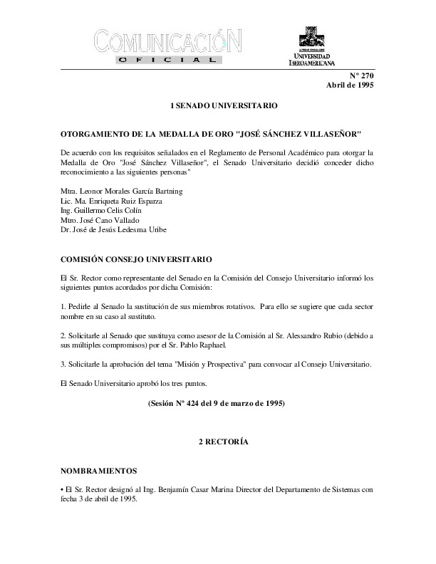 | Comunicación Oficial No. 270. 1 de abril de 1995 | Comunicación Oficial No. 270. 1 de abril de 1995 | | |