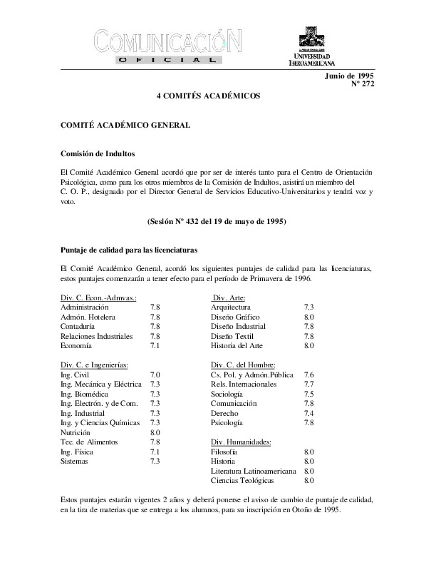 | Comunicación Oficial No. 272. 1 de junio de 1995 | Comunicación Oficial No. 272. 1 de junio de 1995 | | |