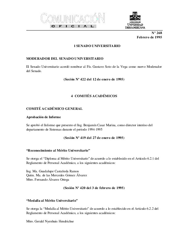 | Comunicación Oficial No. 268. 1 de febrero de 1995 | Comunicación Oficial No. 268. 1 de febrero de 1995 | | |