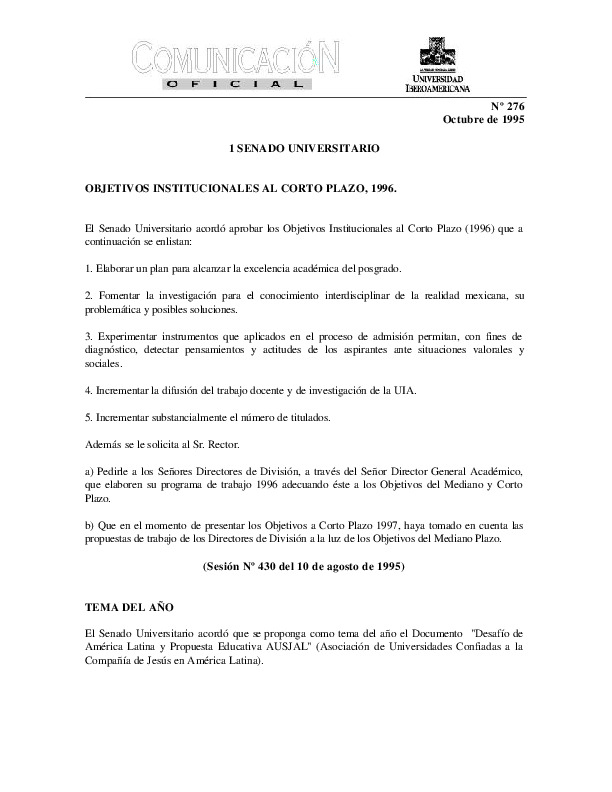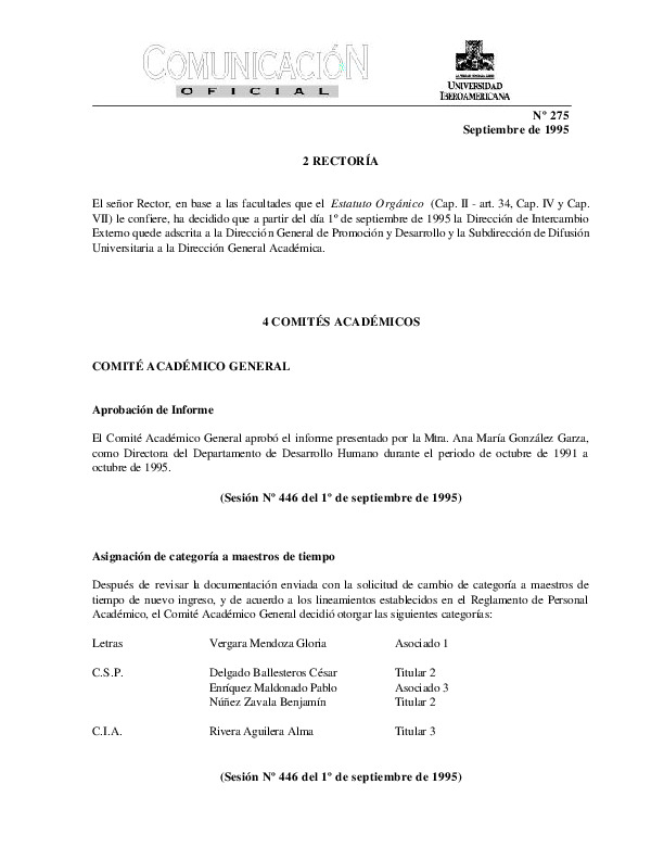 | Comunicación Oficial No. 276. 1 de octubre de 1995 | Comunicación Oficial No. 276. 1 de octubre de 1995 | | |