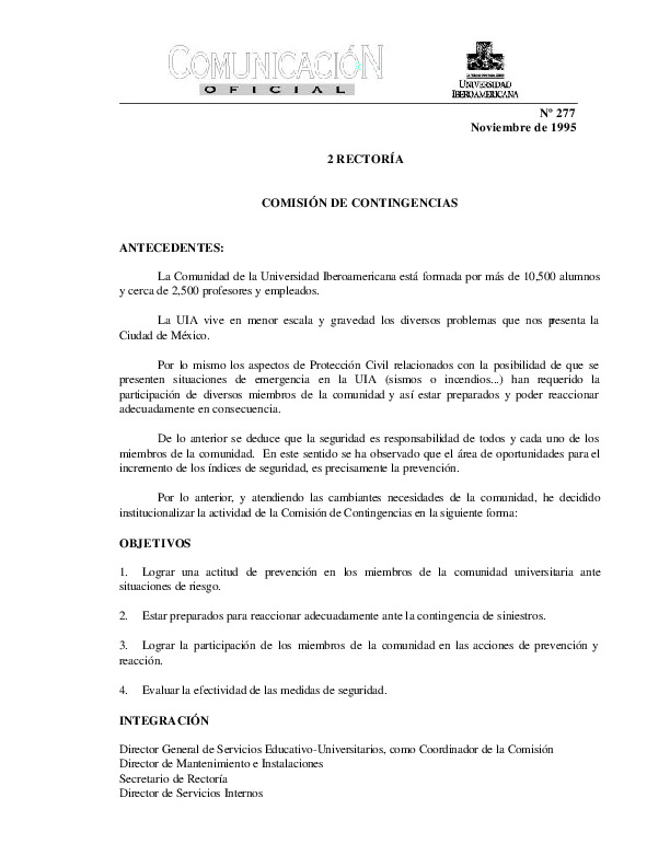 | Comunicación Oficial No. 277. 1 de noviembre de 1995 | Comunicación Oficial No. 277. 1 de noviembre de 1995 | | |