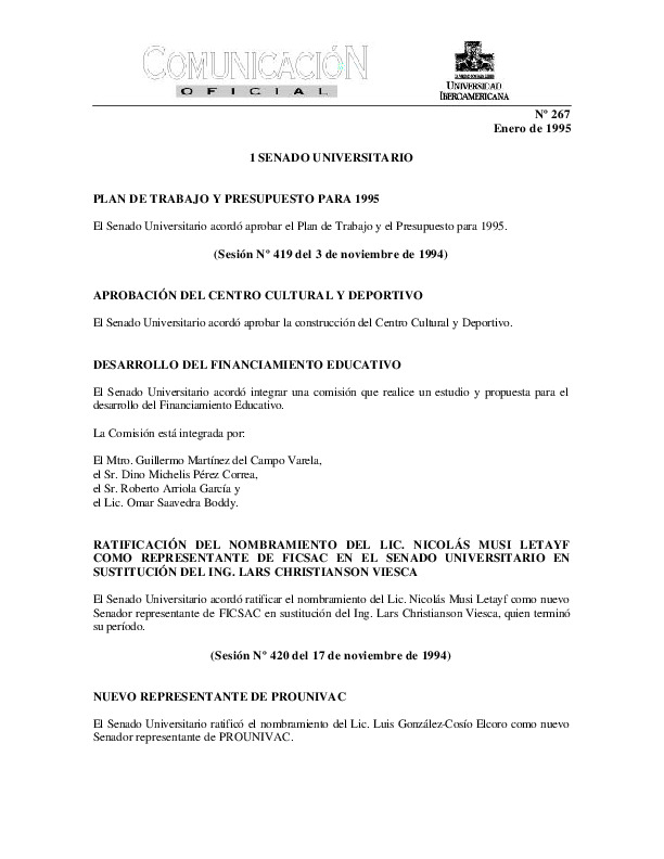 | Comunicación Oficial No. 267. 1 de enero de 1995 | Comunicación Oficial No. 267. 1 de enero de 1995 | | |