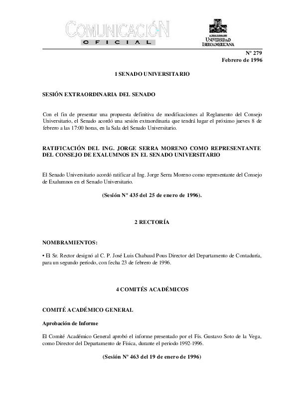 | Comunicación Oficial No. 280. 1 de marzo de 1996 | Comunicación Oficial No. 280. 1 de marzo de 1996 | | |