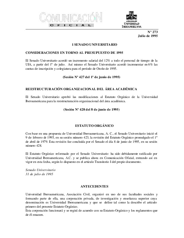 | Comunicación Oficial No. 273. 1 de julio de 1995 | Comunicación Oficial No. 273. 1 de julio de 1995 | | |
