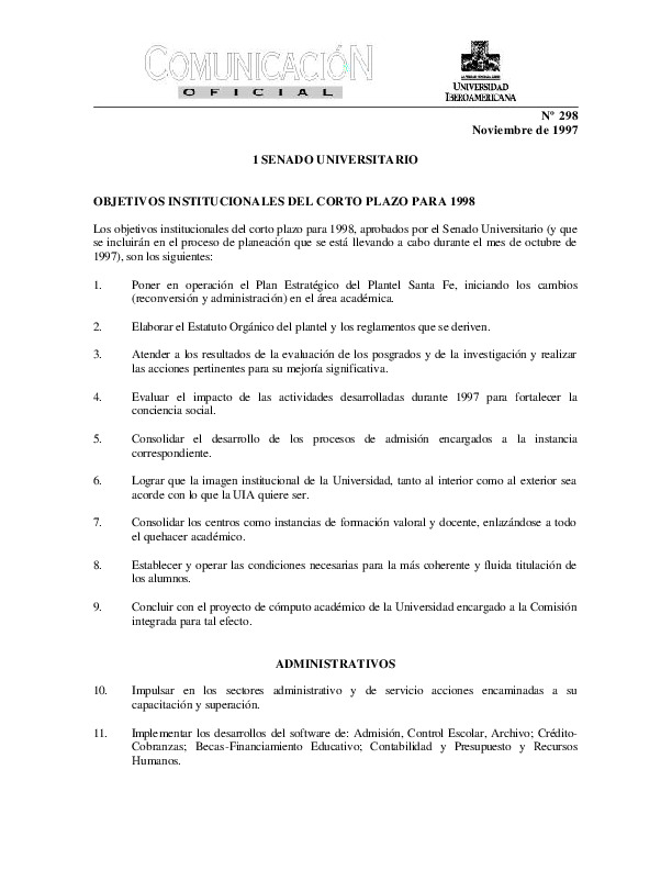 | Comunicación Oficial No. 298. 1 de noviembre de 1997 | Comunicación Oficial No. 298. 1 de noviembre de 1997 | | |