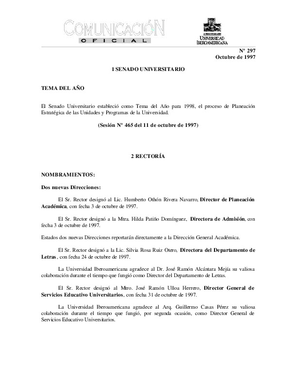 | Comunicación Oficial No. 297. 1 de octubre de 1997 | Comunicación Oficial No. 297. 1 de octubre de 1997 | | |