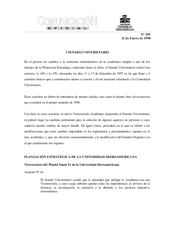 | Comunicación Oficial No. 299. 12 de enero de 1998 | Comunicación Oficial No. 299. 12 de enero de 1998 | | |