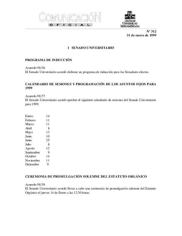 | Comunicación Oficial No. 312. 31 de enero de 1999 | Comunicación Oficial No. 312. 31 de enero de 1999 | | |
