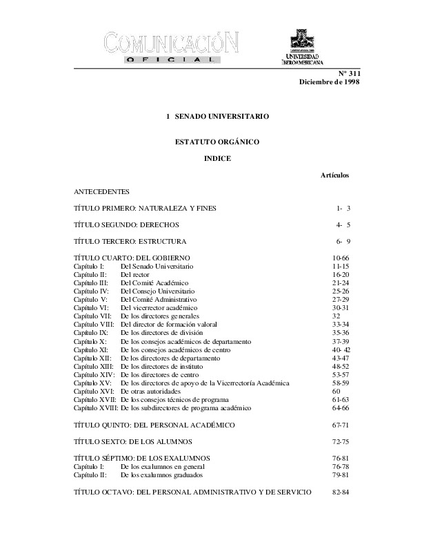 | Comunicación Oficial No. 311. 1 de diciembre de 1998 | Comunicación Oficial No. 311. 1 de diciembre de 1998 | | |