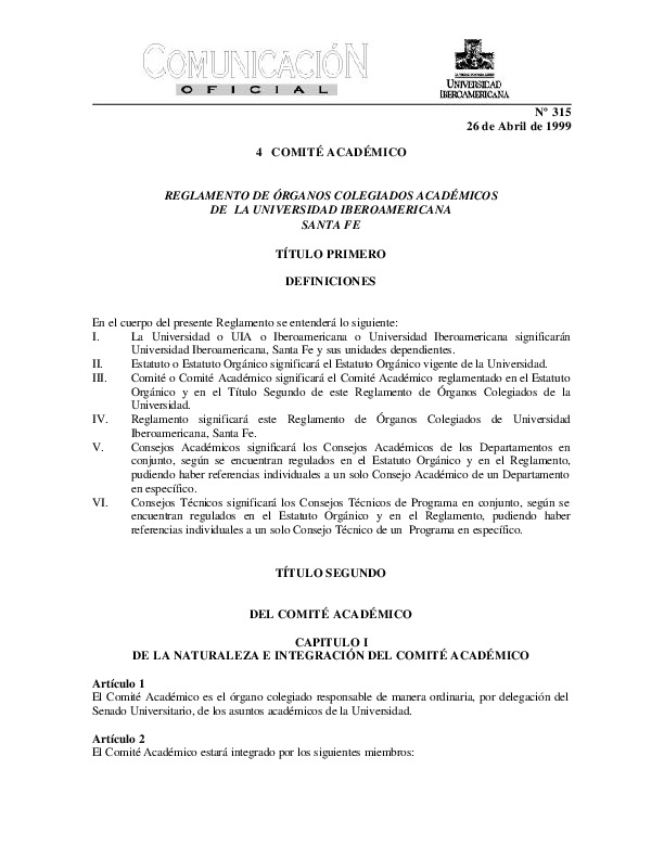 | Comunicación Oficial No. 315. 26 de abril de 1999 | Comunicación Oficial No. 315. 26 de abril de 1999 | | |