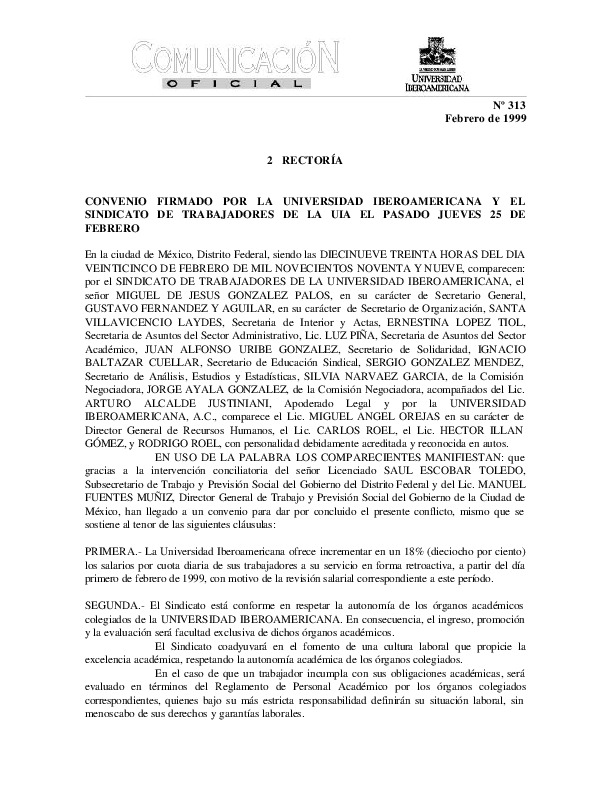 | Comunicación Oficial No. 313. 1 de febrero de 1999 | Comunicación Oficial No. 313. 1 de febrero de 1999 | | |