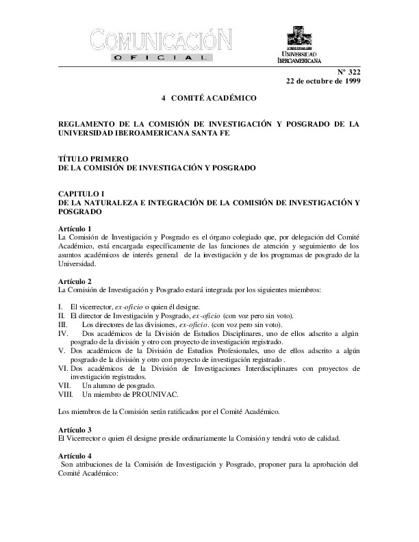 | Comunicación Oficial No. 322. 22 de octubre de 1999 | Comunicación Oficial No. 322. 22 de octubre de 1999 | | |