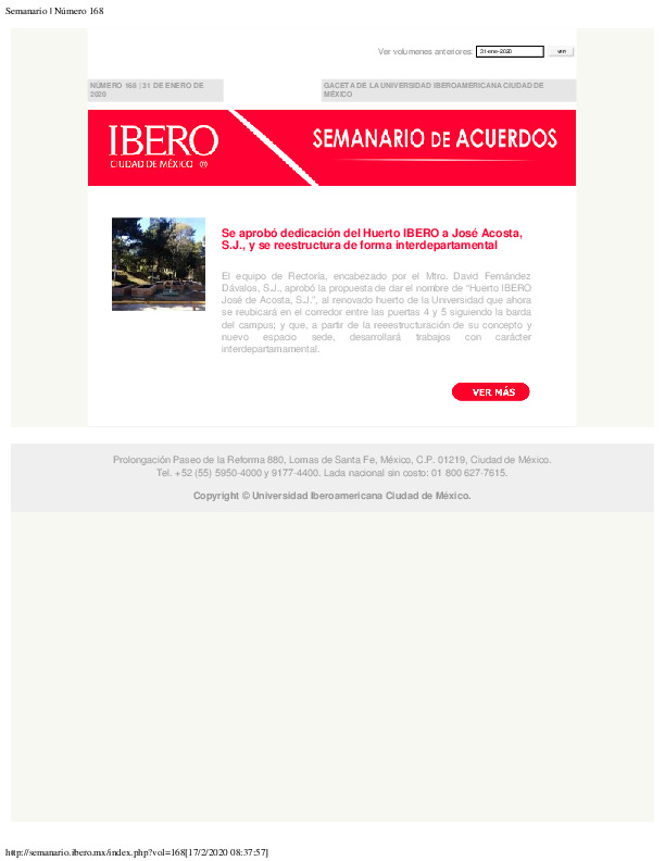 | https://ibero.mx/semanario/017/index.html | Semanario de Acuerdos Número 17 Semanario de Acuerdos (Universidad Iberoamericana Ciudad de México) Gaceta de la Universidad Iberoamericana Ciudad de México |