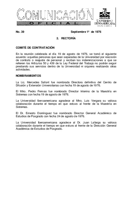 | Comunicación Oficial No. 039 | Comunicación Oficial No. 039 | | |