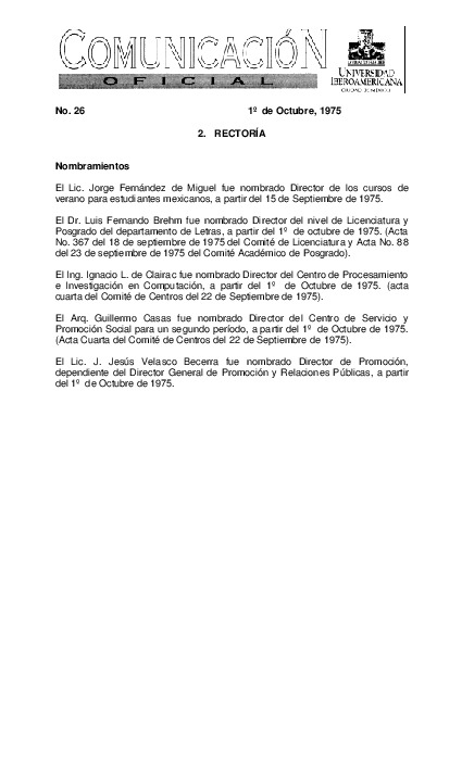 | Comunicación Oficial No. 026 | Comunicación Oficial No. 026 | | |